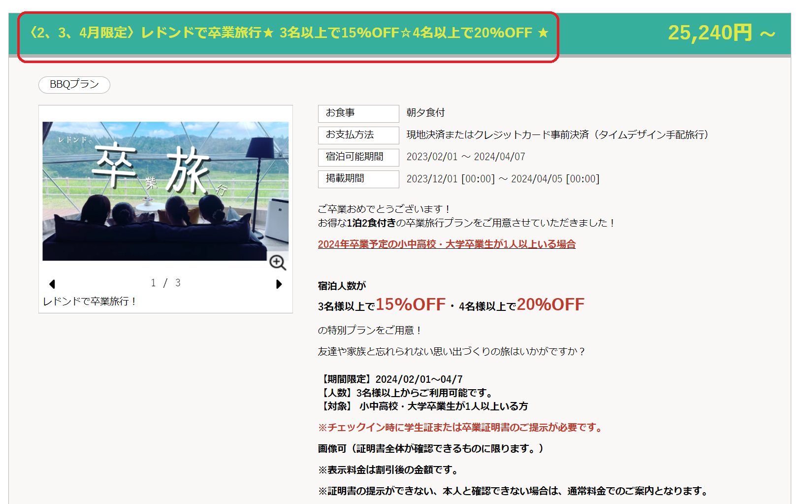 ※チェックイン時に学生証または卒業証明書のご提示が必要です。画像可(証明書全体が確認できるものに限ります。)※証明書の提示ができない、本人と確認できない場合は、通常料金でのご案内となります。